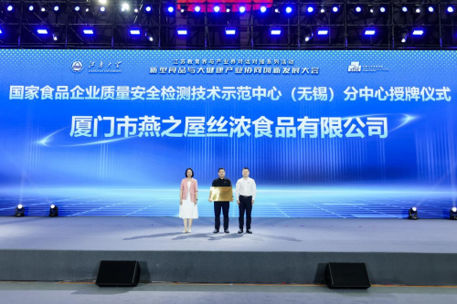 图:燕之屋荣获“国家食品企业质量安全检测技术示范中心(无锡)分中心”授牌