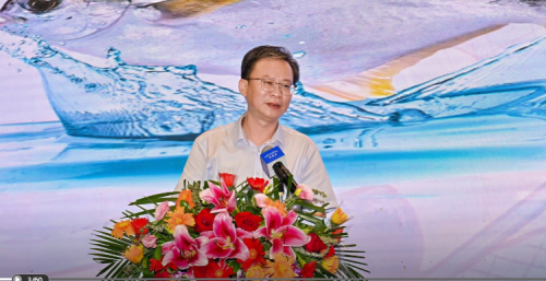 湛江市政府党组成员、副市长吴国雄致辞,他表示,当前,湛江市金鲳鱼产业发展迎来了前所未有的战略机遇期和重要窗口期。湛江将进一步坚定向海图强的信心决心,持续擦亮“中国金鲳鱼之都”的金字招牌,加快建设特色型现代海洋城市,全力打造全国现代化海洋牧场示范市。