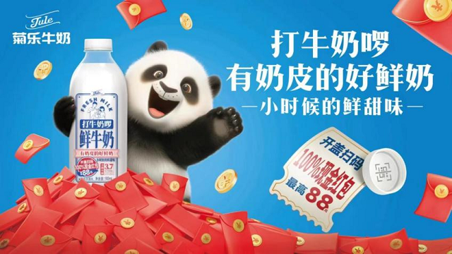2024年8月8日起,成都本土老牌乳制品品牌菊乐携旗下高端鲜奶品牌‘打牛奶啰’强势登陆成都地铁,覆盖全成都范围内16个地铁站,41座裸眼3D包柱大屏,涵盖机场、高铁、政务、展会、商圈等多个场景,日均客流量达300万+人次。这个夏天,在成都地铁和软萌可爱的大熊猫一起‘打牛奶啰’,即日起至2024年12月31日,购买菊乐“打牛奶啰”开盖即可扫码抽奖,100%现金红包即刻到账、最高可得88元。