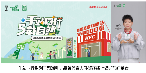 2025年,站在千站突破的新起点上,肯德基食物驿站将在全国各地推出“千站同行,5载自然”主题活动,通过线上、线下互动提升社区居民的节粮意识。同时,肯德基携手品牌代言人孙颖莎,在社交媒体平台通过趣味节粮科普互动,鼓励更多人践行节约粮食、减少浪费。